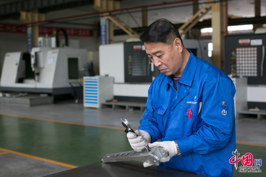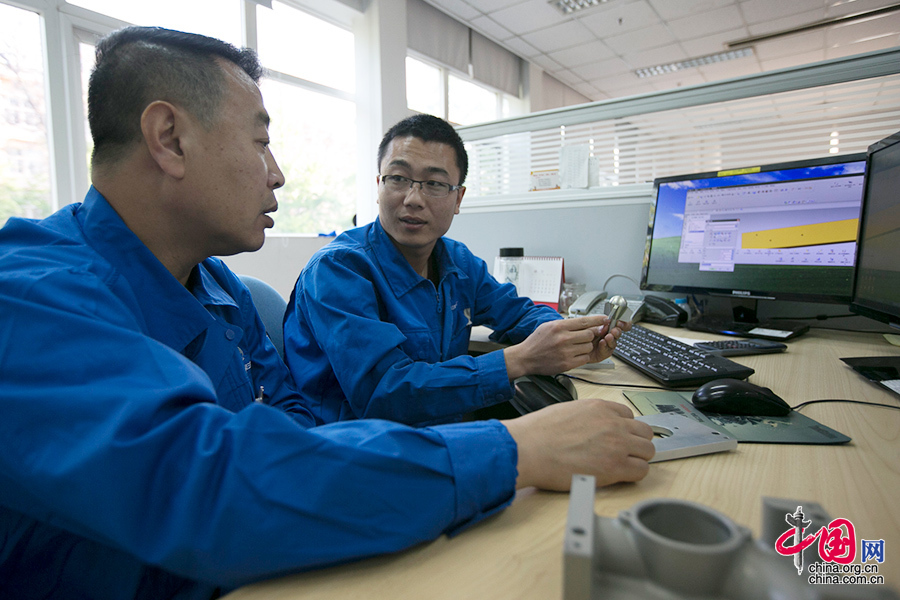 认真严谨是刘志凯师徒工作的基础,他们加工切削的材料经常是钛合金等高密度材质,不但原材料昂贵,而且对精度要求极高,每个产品的误差不得超过0.01毫米。中国网记者 董宁摄影