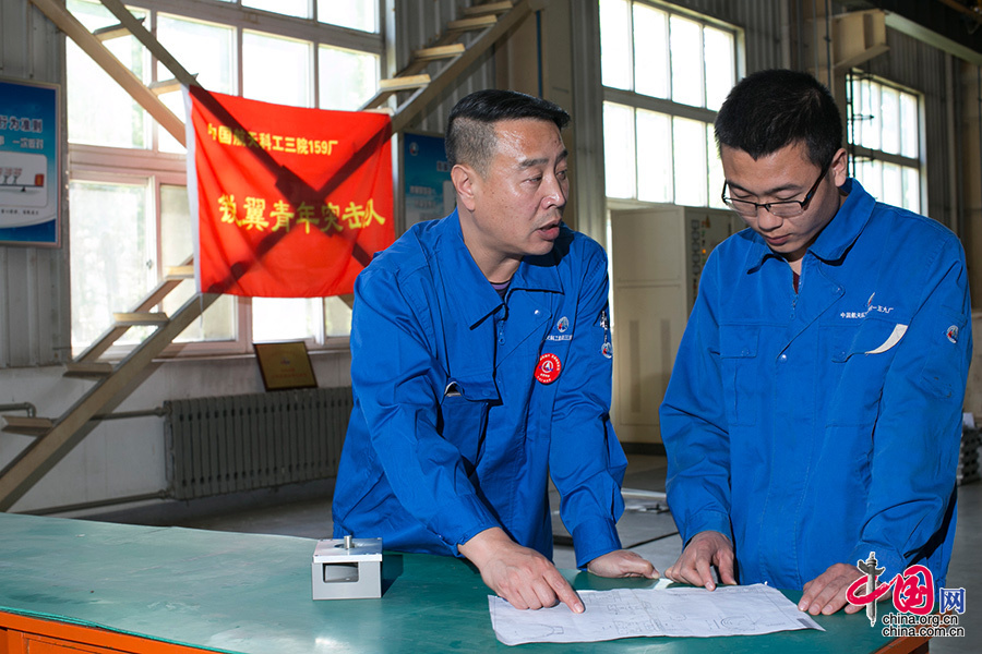 ??? “90后”贺潇强在学生时期获得过全国数控比赛一等奖,一入厂就被已经带过六个徒弟的刘志凯相中,成为刘志凯的第七个徒弟。刘志凯在工作中认真负责,技艺高超,参加工作近三十年来获奖无数,是航天三院159厂的机加“大拿”。同事们戏称他们师徒二人为“强强联合”。 中国网记者 董宁摄影