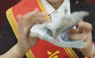 除了快和准确之外,陶萍的点钞还有一个绝活,就是能在高速的点钞过程中准确的识别假币,凭借惊人的手感,她能准确的抽出常人肉眼都难以轻易辨别的假币。她也因此被公认为业内大师。二指拨算盘法