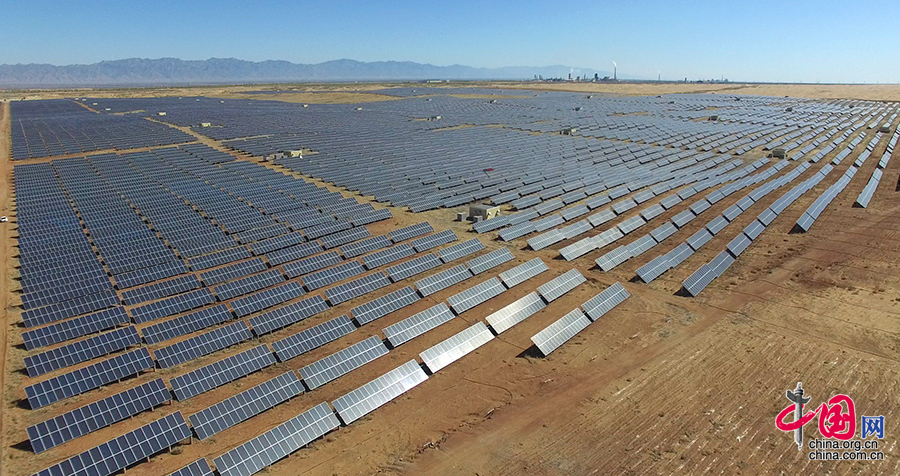 这些太阳能板像是一片片的树叶,日复一日的吸收着太阳的光芒,转化成方便传输的清洁能源。每年有14.7亿度电,从这里传到千家万户。 中国网杨佳 摄影报道