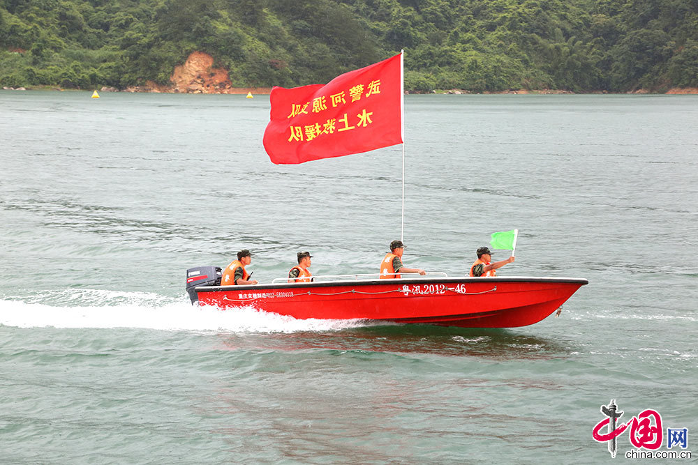 中国网7月19日讯(记者 裴希婷)18日,“同心共筑强军梦”网络媒体国防行的30多家媒体走进武警广东省总队河源市支队,在河源市万绿湖观摩了水上救援训练。
