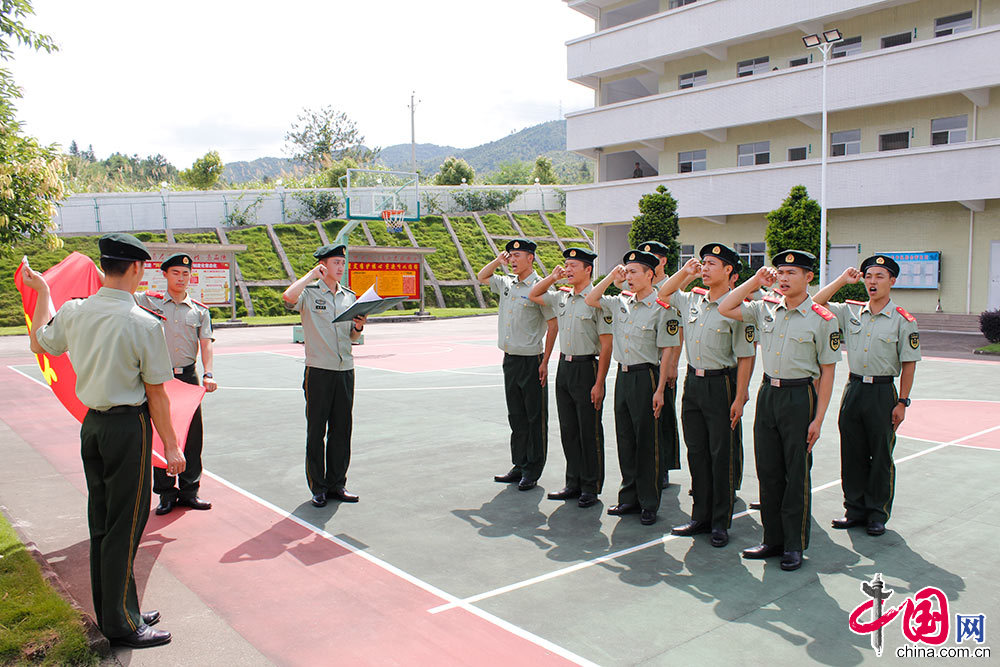 武警广东省总队河源市支队和平县中队,党员重温入党誓词。(和平县中队提供)