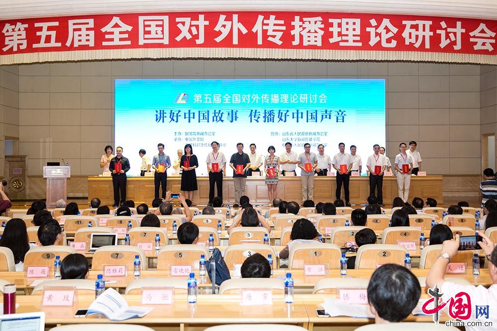 第五届全国对外传播理论研讨会在烟台举行,国务院新闻办公室副主任郭卫民等领导为优秀论文作者颁奖。中国网 董宁摄影