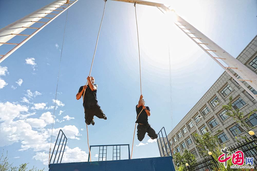 新疆乌鲁木齐市公安局特警七支队训练项目瞬间。吕伊晗摄影