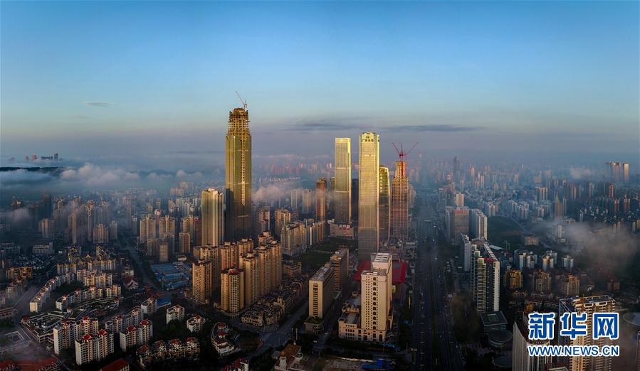 朝阳映射下的南宁市区(拼接照片,8月19日摄)。广西壮族自治区南宁市,简称“邕”,是中国面向东盟开放合作的前沿城市、中国—东盟博览会永久举办地、北部湾经济区核心城市。南宁市素有“中国绿城”的美誉,是“联合国人居奖”获得城市、“全国文明城市”。一年一度的南宁国际民歌艺术节享誉中外,让南宁成为了“天下民歌眷恋的地方”。 9月12日至15日,第14届中国—东盟博览会(东博会)将在南宁市举办。 新华社记者 李鑫 摄