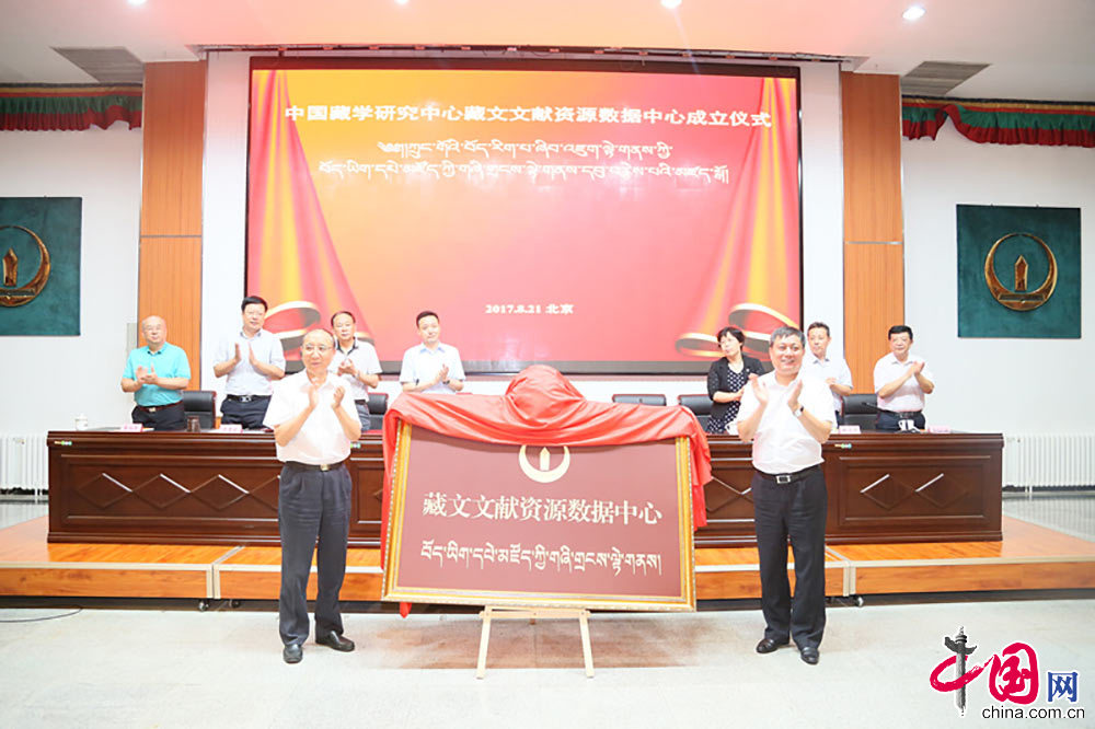 中国网讯 8月21日,藏文文献资源数据中心在中国藏学研究中心正式成立,中央西藏工作协调小组办公室副主任斯塔、中国藏学研究中心党组书记安七一共同为中心揭牌。