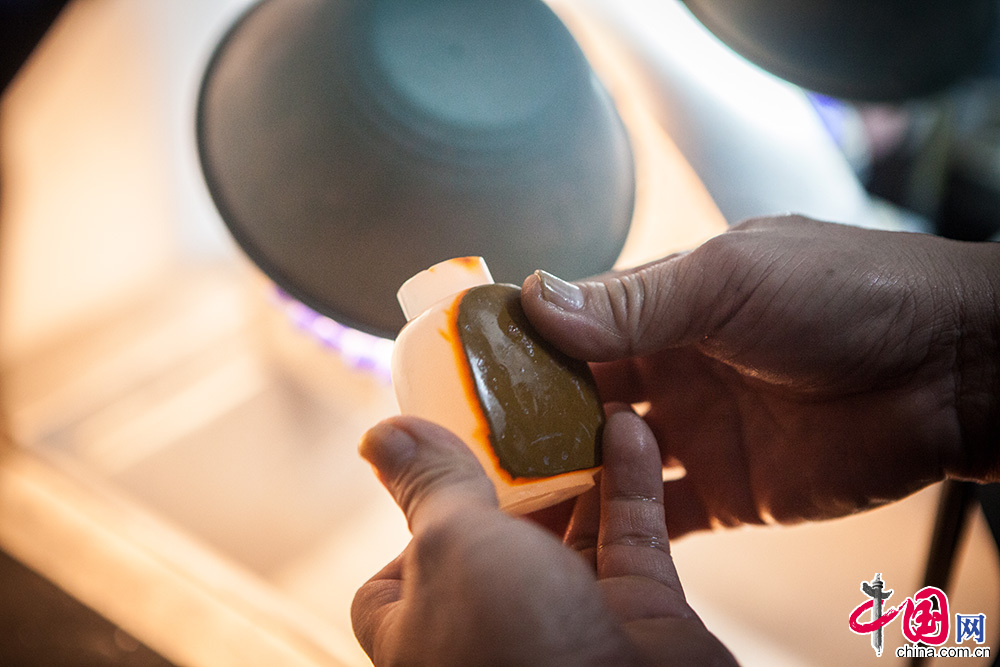 如今,在李克生的徒弟中,很多人都是慕名前来,主动拜师学艺,他们中有功底深厚的工匠,也有年仅十几岁,白纸一样的“00后”。徒弟许泽荣,被认为是目前深得李克生真传的一位。已经成家的他在潮州也有自己的加工作坊,慕名而来往返两地学艺。中国网记者 伦晓璇 摄