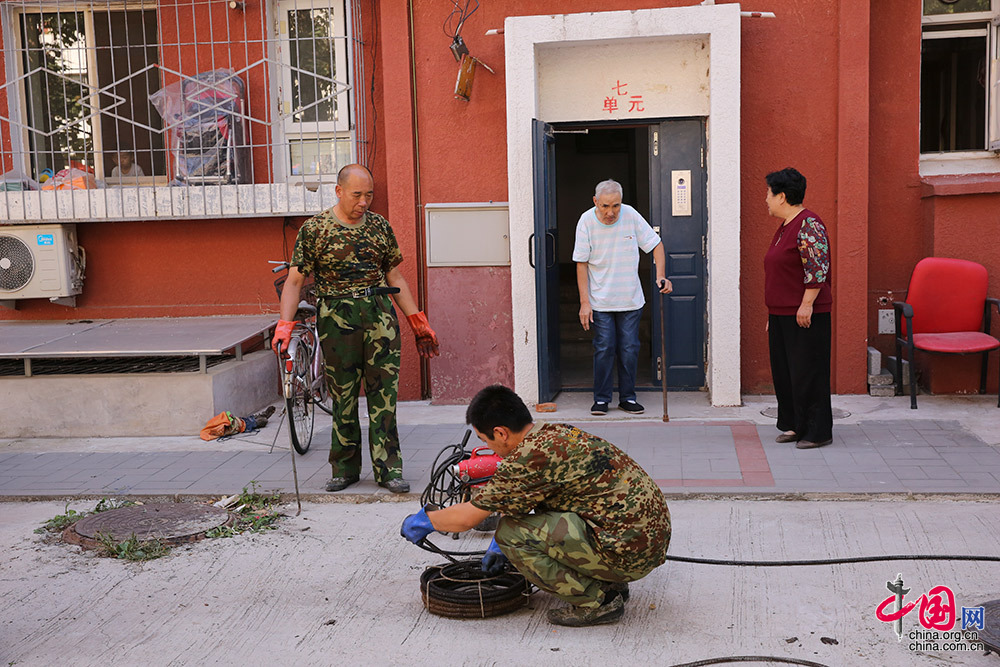 张喜忠规定,每周六上午,是老兵保洁服务中心的固定学雷锋日。北京市海淀区玉渊潭乡敬老院是“老兵”义务服务的对象之一,张喜忠定期对敬老院的下水道进行清理。中国网记者 董宁 摄影