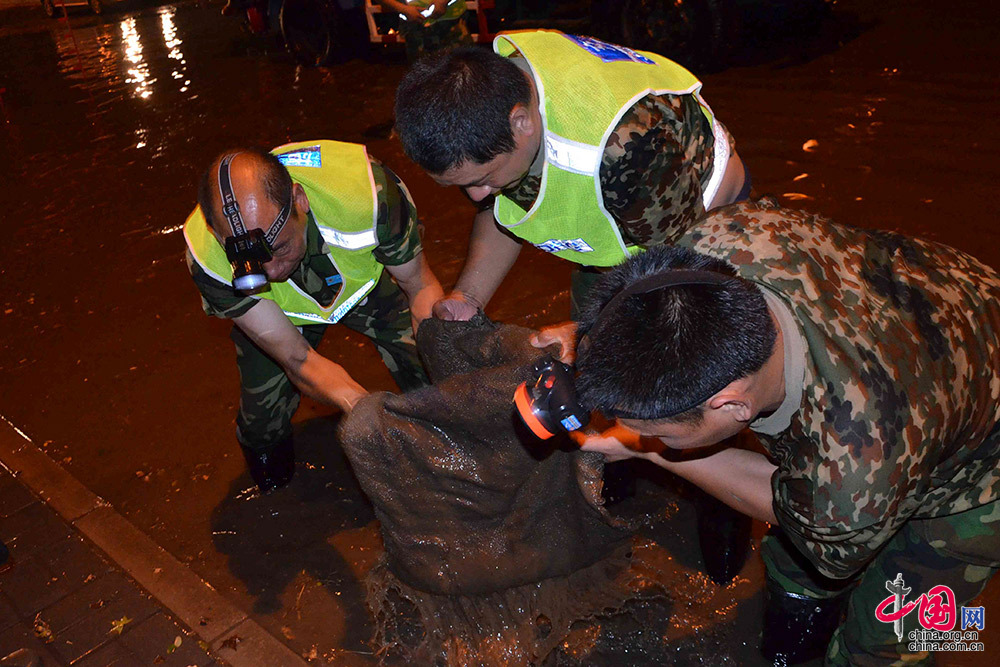 2012年7月21日,北京遭遇61年不遇的特大暴雨。当晚,张喜忠带领老兵志愿服务队在西四环立交桥下义务排水5000立万,疏通管道2000米。并于第二天一大早就赶往受灾最严重的房山区河北镇清理山体滑坡路障2000多立方,在河北镇疏通排水5000立方,加固河堤2000米,清淤泥300平方米。(受访对象供图)