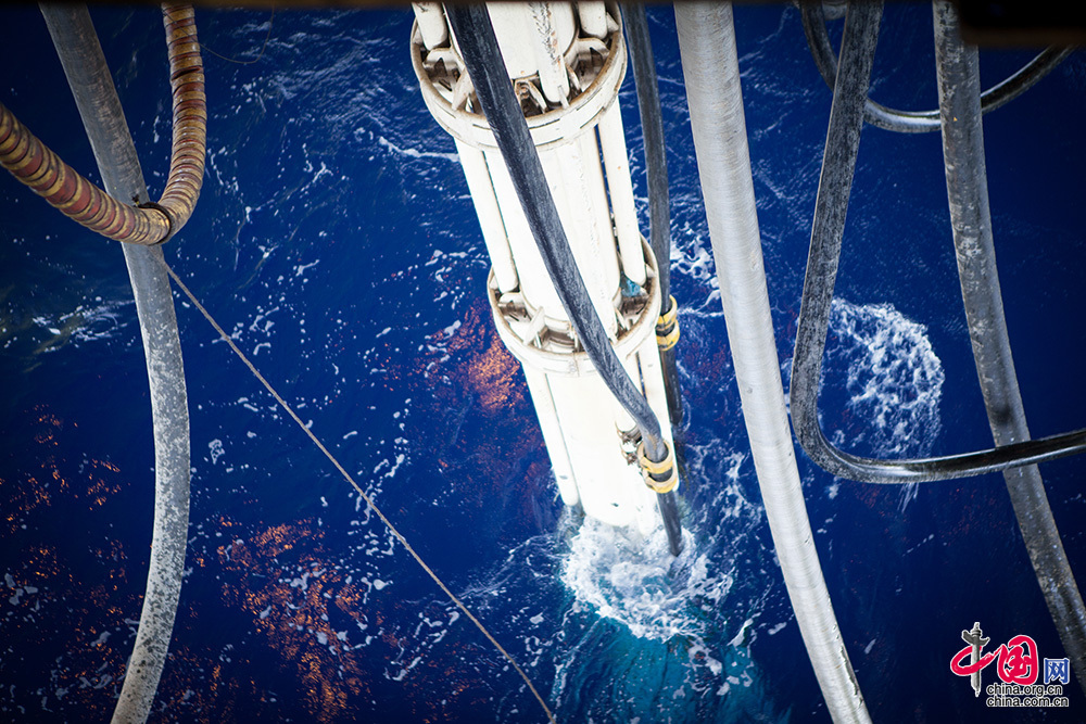 “兴旺号”深水钻井平台正在进行电测作业。中国网记者 伦晓璇 摄