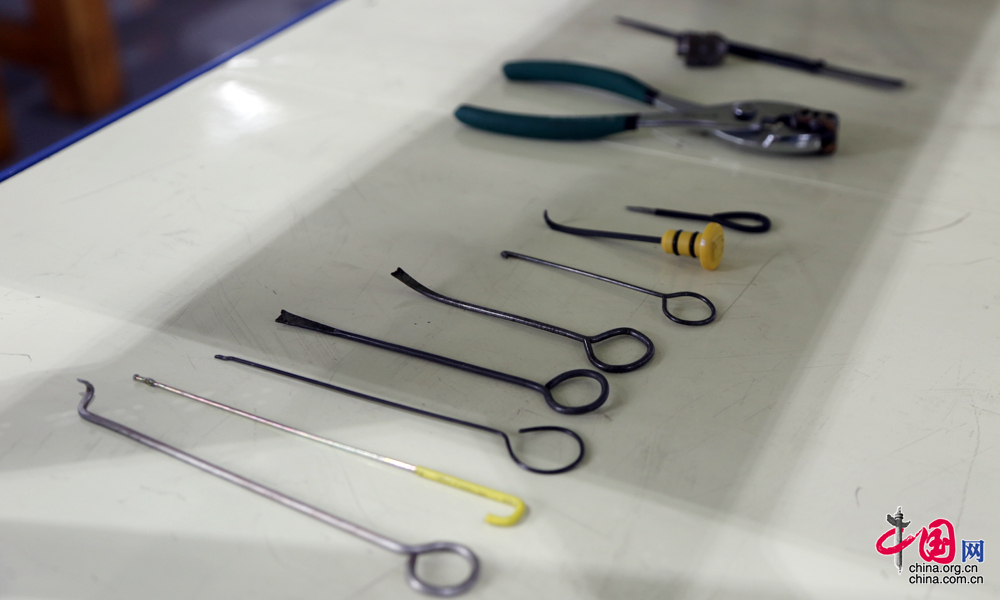 张永忠的工作室内有不少他创新改造发明的工具及零件。他不仅是技术能手,还是创新的排头兵。在江北发动机工厂,大家都知道张永忠攻克G系列气门调整螺钉的故事:在一次技术交流中,张永忠发现G系列气门间隙调整合格率低,调整螺钉和摇臂报废率高,且费时费力,严重影响生产速度。为提高生产效率,他首先找到日本厂商询问,是否可以提供调整气门间隙的专用工具,但对方提出需要将相关部件资料运回日本本土进行开发,且不保证完全解决问题,价格也相当昂贵。这让张永忠非常愤慨。“不求别人,我自己来!”有些“赌气”的张永忠日夜鏖战,自己动手设计、画图纸,试验,再修改,再推翻重来……通过反复的实践和摸索,一个又快又能保证质量的专用工具、工装终于研制成功并投入使用,其装配合格率达100%,报废率为零,不但突破了生产瓶颈,还获得了国家专利。中国网杨楠 摄影