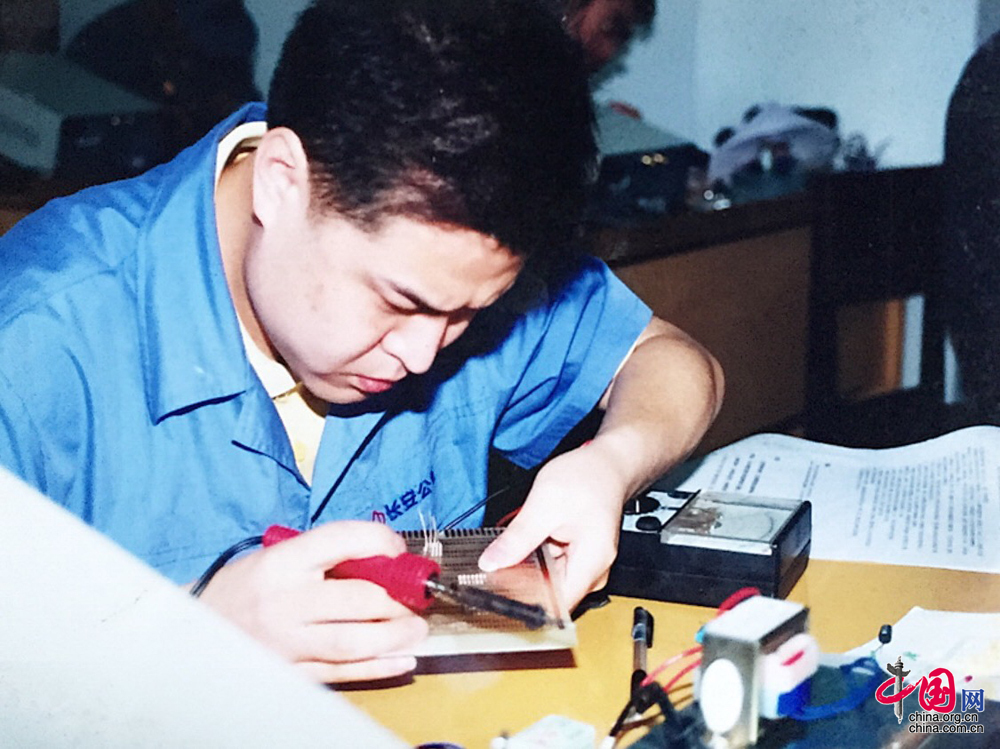 刘源从小就看着父亲摆弄各种电子元器件,渐渐对电器维修产生了兴趣。15岁左右,就正式“拜”父亲为师,系统学习电器维修,从最基础的认识电阻、电容、晶体三级管学起。中专选择了电子电器专业。16岁时,他子承父业进入长安厂,成为一名维修工人。