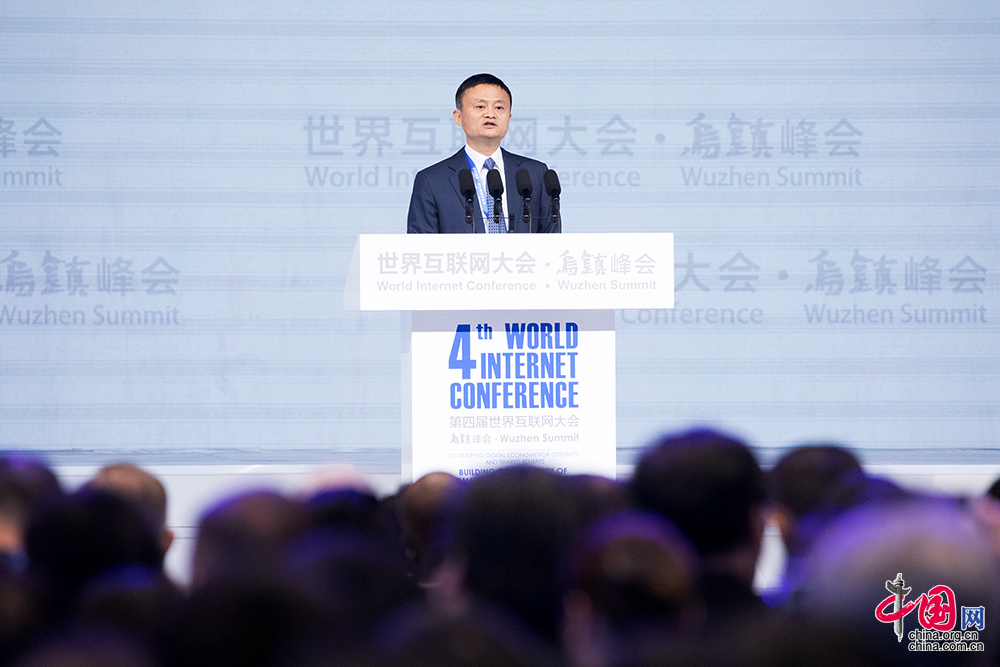 12月3日,第四届世界互联网大会开幕式在乌镇互联网会展中心召开。阿里巴巴集团董事局主席马云在开幕式上发表演讲。中国网记者 张若梦摄影