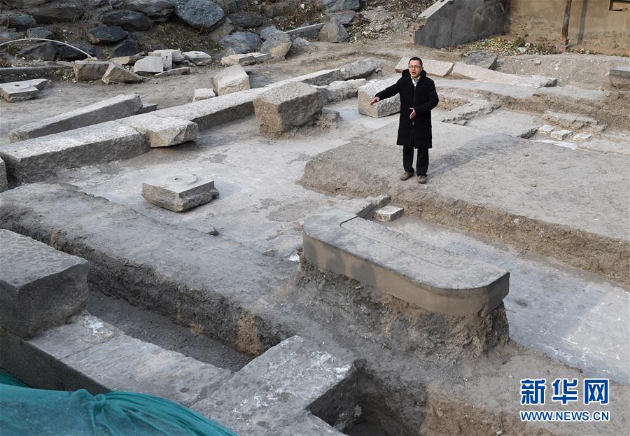 12月14日,北京市文物研究所圆明园课题组组长张中华在圆明园紫碧山房考古工地现场介绍相关情况。