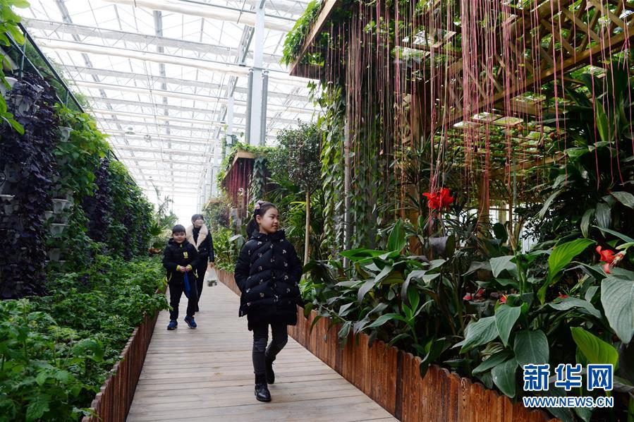 12月17日,游人在江苏省盐城市阜宁县七彩阜宁国家农业公园“水晶花宫”观光游览。今年以来,江苏省盐城市阜宁县积极调整农业产业结构,规划建设5000亩七彩阜宁国家农业公园推动农业休闲旅游产业发展,先后建成“水晶花宫”“十里荷塘”等阜宁十景。其中,“水晶花宫”率先引入全电能集中温控系统,采用立体种植、无土栽培等方法培植蔬菜、花卉,融环保、经济与观赏价值于一体。截至目前,该园已累计接待游客30万人次,实现主营业务收入1000万元。新华社发(孙健钧摄)