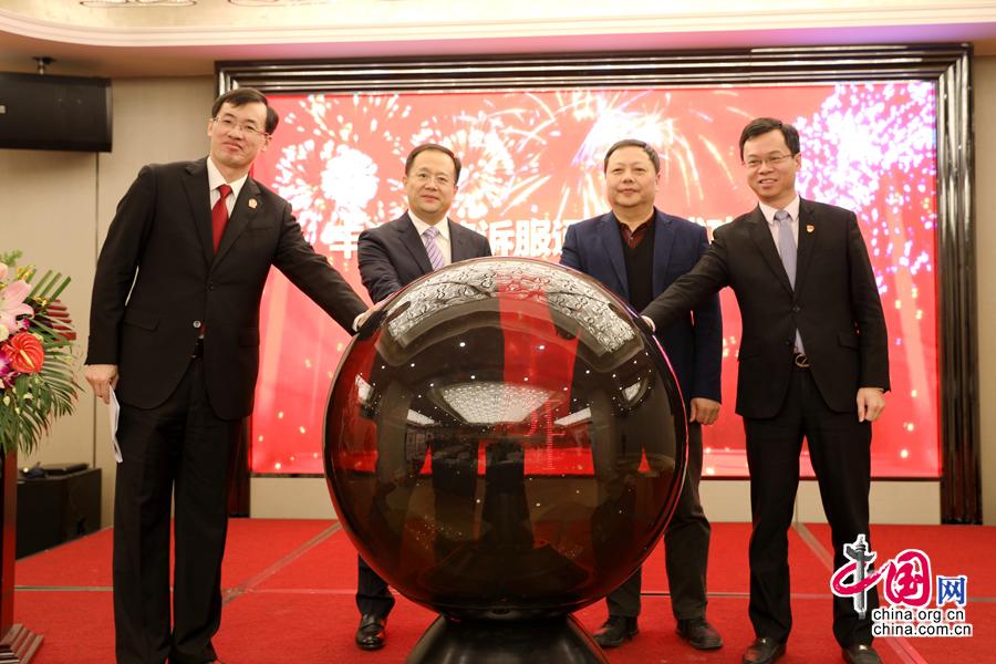 泉州市市中院党组书记、代院长陈明、泉州农商银行党委书记、董事长林向前、南威软件集团总裁吴志雄共同启动“诉服通”上线仪式。