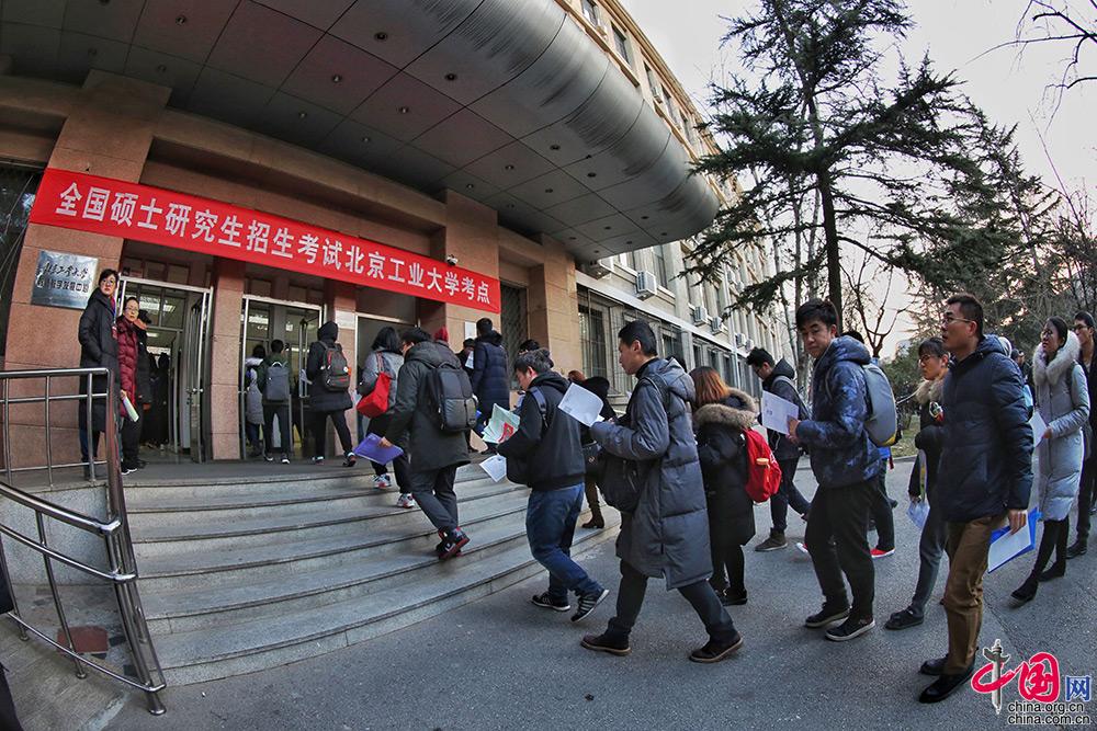 12月23日,2018年全国硕士研究生招生考试正式开始。图为北京工业大学考点考生排队进入考场。 中国网 郑亮 摄影