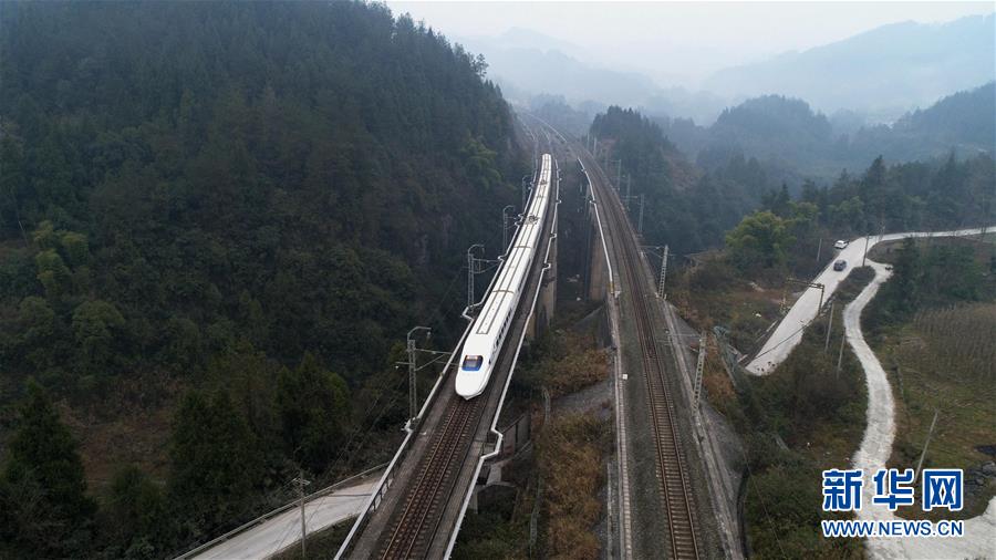 12月23日,一列动车经过宜万铁路湖北省恩施市境内。