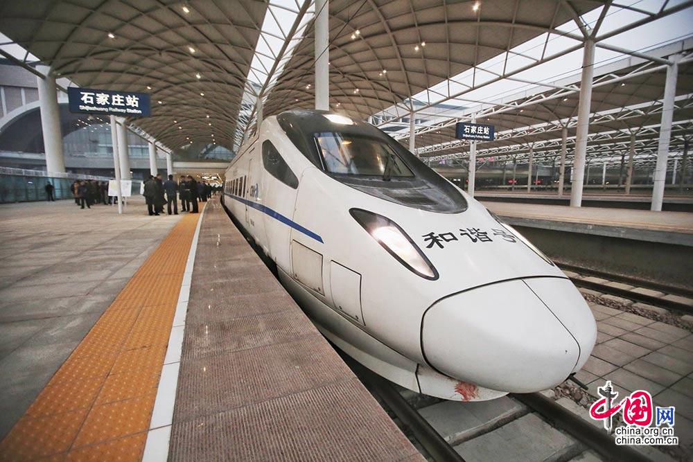 12月28日, 石济客专开通的首趟列车在石家庄站停靠等待乘客的到来。中国网 郑亮摄影