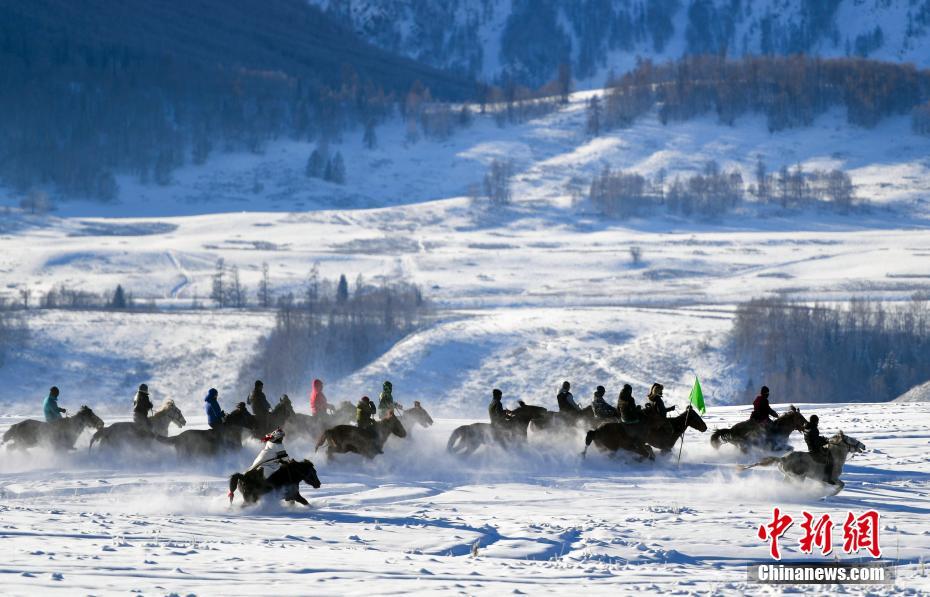 1月1日,新年第一天,地处新疆阿勒泰山深处,被誉为“神的自留地”的禾木村,当地民众策马扬鞭奔驰在茫茫雪原中,迎接新年到来。近日的一场大雪令禾木村的积雪厚度达到50厘米左右,也将大山深处的禾木村装扮的如同“童话世界”,新疆喀纳斯冰雪风情旅游季也正式拉开帷幕。中新社记者 刘新 摄