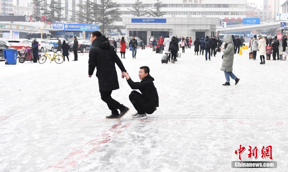 1月3日,兰州迎来2018年首场降雪。当日,7时57分,兰州中心气象台发布甘肃省道路结冰黄色预警信号:受降雪影响,预计24小时内,甘肃省的武威、白银、兰州、甘南、临夏、定西等市州部分地方可能出现道路结冰,对交通有一定影响。 杨艳敏 摄