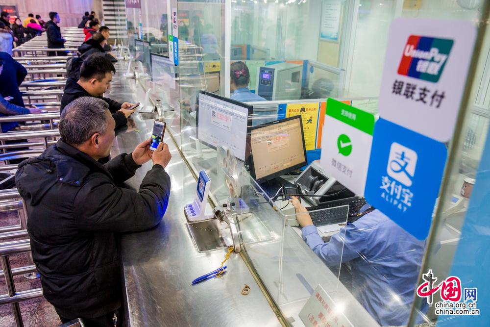 2018年春运期间,前往车站窗口购票的乘客可以通过手机扫描二维码使用微信或支付宝完成购票。中国网记者 郑亮摄