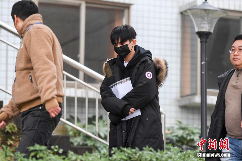 1月5日,2018湖南艺术统考表演类在长沙开考,歌手易烊千玺来到考点参考,引起了粉丝们的热捧。图为易烊千玺戴着口罩来到考点。 杨华峰 摄