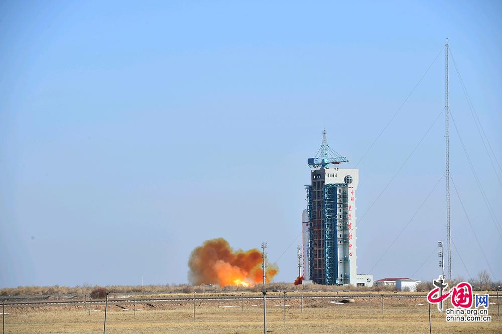 中国网讯2018年1月13日15时10分,我国在酒泉卫星发射中心用长征二号丁运载火箭,成功将陆地勘查卫星三号发射升空,卫星进入预定轨道。该星主要用于开展陆地资源遥感勘查。这是长征系列运载火箭的第263次飞行。郝伟 摄影