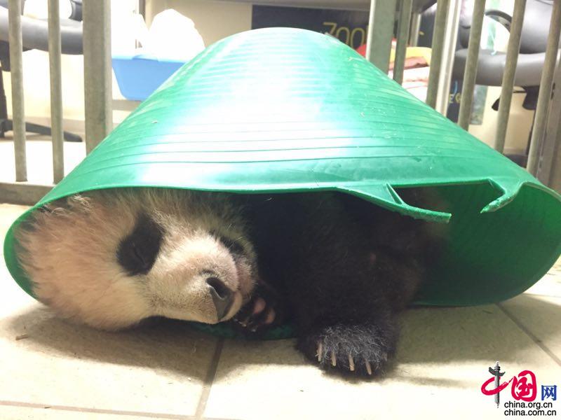 2018年1月13日,首只在法国出生的大熊猫“圆梦”迎来了首个公众见面日。“圆梦”从出生时的142.4g长成了现在超过11公斤的小圆球。 图片由成都大熊猫繁育研究基地提供