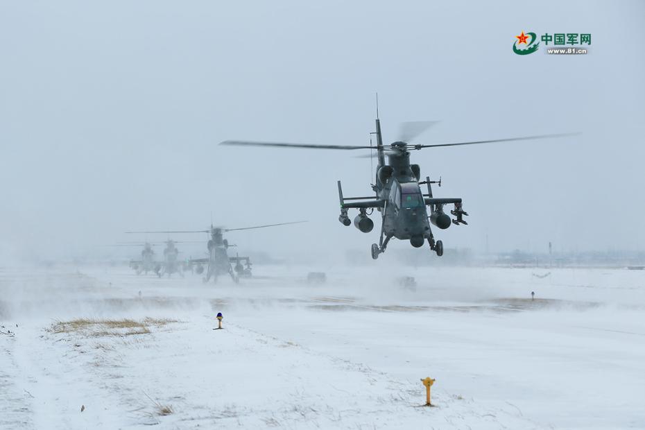 1月8日,陆军第79集团军某陆航旅在漫天大雪的极寒复杂气候条件下组织大集群编队飞行、侦察护航等实战化课目演练,不断提高部队全天候作战能力。李宁 摄影报道 图片来源:中国军网
