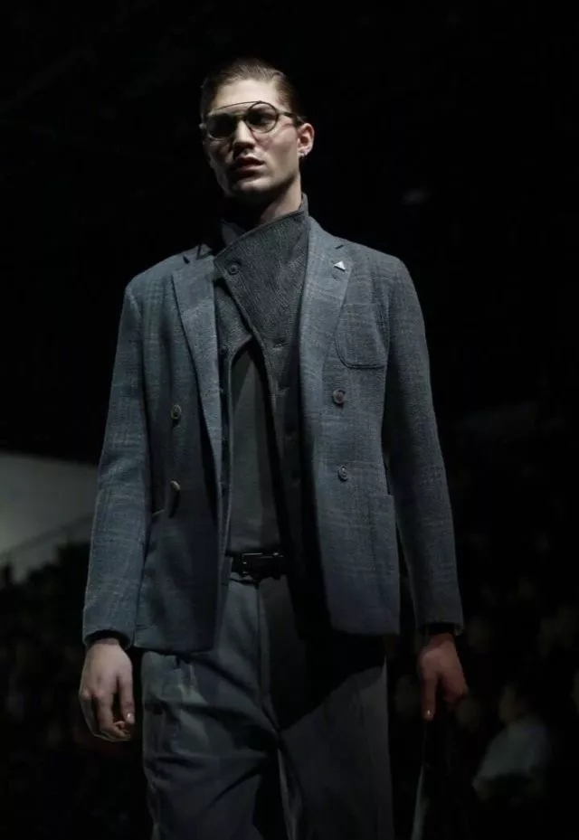 Armani阿玛尼 2018秋冬男装系列在正装中融入了些许休闲元素,帅气的大翻领,宽松的裤装, 军旅风的靴子,让型男衣橱有了更多可能性。