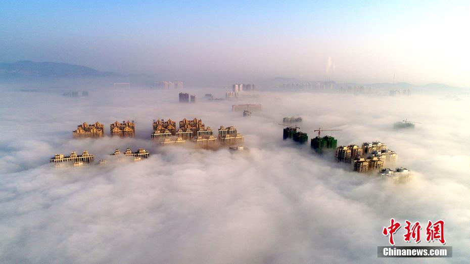 1月20日,湖北省荆门市城区出现平流雾景观,整个城市都笼罩在升腾的云雾之中,仅有高层建筑露出顶部,若隐若现,美轮美奂,宛如空中之城。平流雾是当暖湿空气平流到较冷的下垫面上,下部冷却而形成的雾,多发生在冬春时节,以北方沿海地区居多,能将城市中的建筑物“缠绕”其中,使身处地面的人们觉得如临仙境。 黄应武 摄
