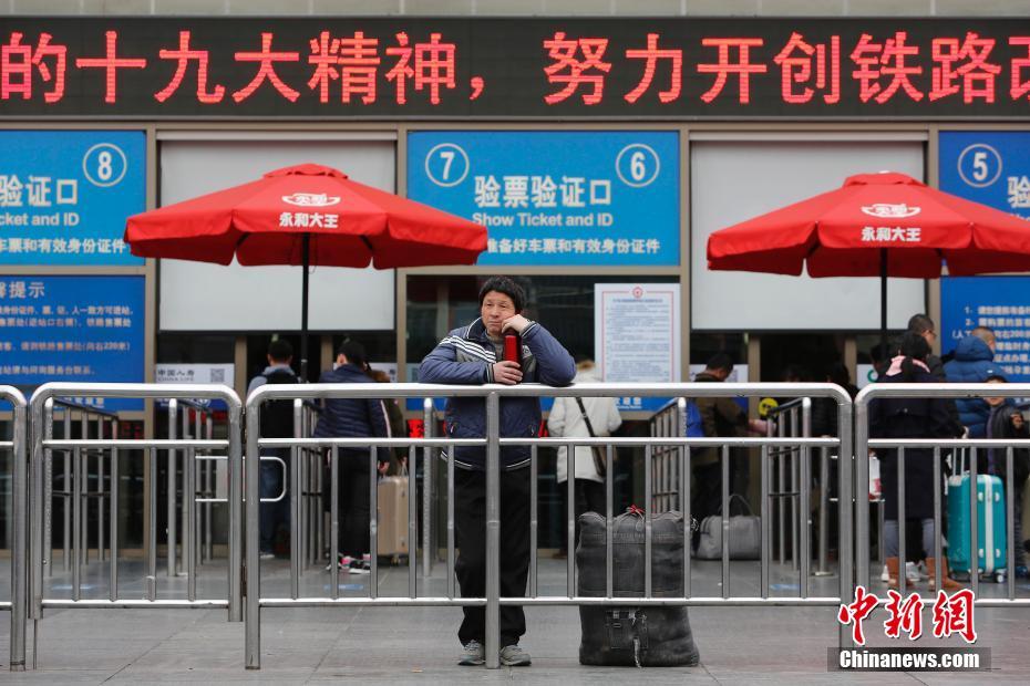 游客在铁路上海站外等待进站上车。 殷立勤 摄