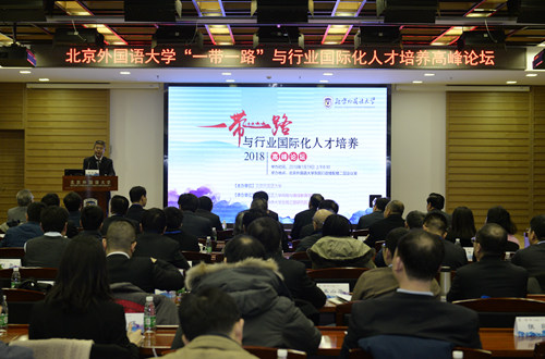 中国网1月22日讯(记者 齐凯)19日上午,由北京外国语大学主办,北京外国语大学网络与继续教育学院和丝绸之路研究院承办的“2018年‘一带一路’与行业国际化人才培养高峰论坛”在北京外国语大学隆重举行。教育部、发改委、国侨办、公安部、商务部等部委领导出席大会并致辞。来自金融、能源、基建、制造、传媒等行业的企业主管、专家学者齐聚一堂,就服务国家战略、促进产教融合及高层次国际化人才培养等议题展开研讨。