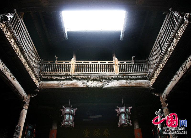 婺源的古村落民居在内部装饰上力求精美,梁栋檩板无不描金绘彩,尤其是充分运用木、砖、石雕艺术,在斗拱飞檐、窗棂槅扇、门罩屋翎、花门栏杆、神位龛座上,精雕细缕。题村广泛,内容丰富,雕刻精美,活生生一部明清风情长卷。徐永健 图/文