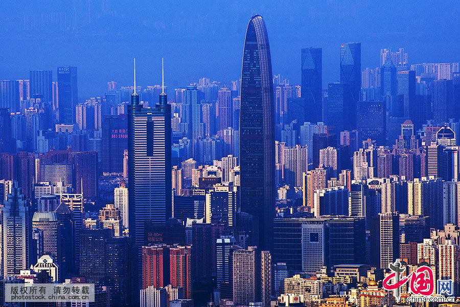 京基100原名京基金融中心(KingKey Financial Center),楼高441.8米,共100层2007年11月竣工,是中国民营地产企业投资建造的最高建筑,保持了多项中国记录、世界纪录,并获得了多项世界级奖项。中国网图片库 邓飞 摄