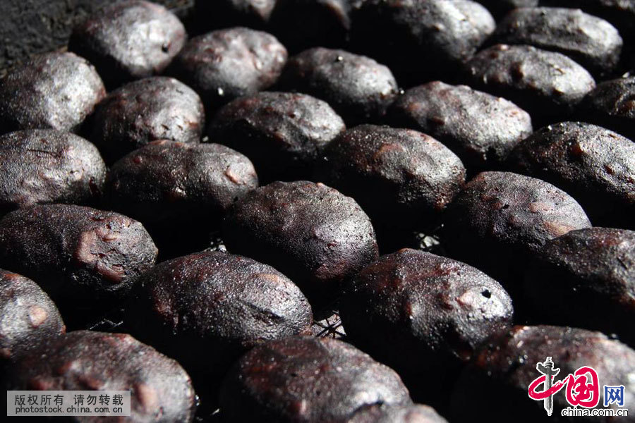 猪血丸子又称血粑豆腐或猪血粑,是湖南邵阳地区的汉族传统名点,属于湘菜系。2014年被列入中华非物质文化遗产四级名录。每年的十一、十二月份,几乎家家户户都制此品,以供数月之需,是当地冬至腊月制作的一种过年食品,有着悠久的传统。此菜以豆腐为主料,配以适量的猪血和猪肉制成。中国网图片库 曾勇摄影