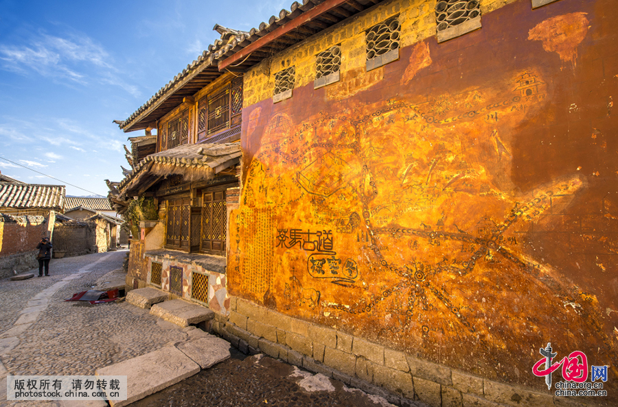 斑驳的墙身涂绘着茶马古道的线路。 刘杰 摄