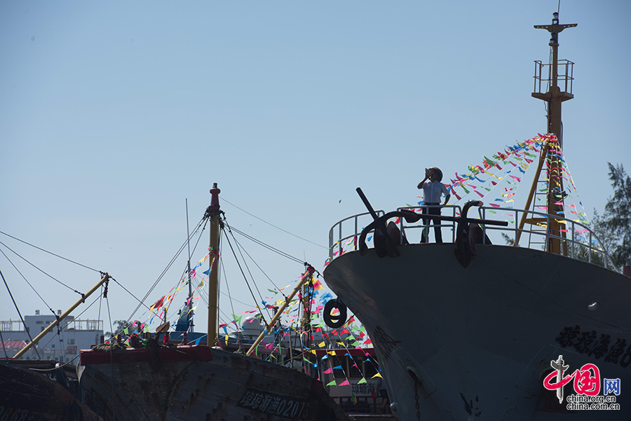 海南潭门渔民吹响出海捕鱼的号角。蒙钟德/摄