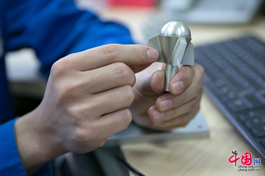 认真严谨是刘志凯师徒工作的基础,他们加工切削的材料经常是钛合金等高密度材质,不但原材料昂贵,而且对精度要求极高,每个产品的误差不得超过0.01毫米。中国网记者 董宁摄影