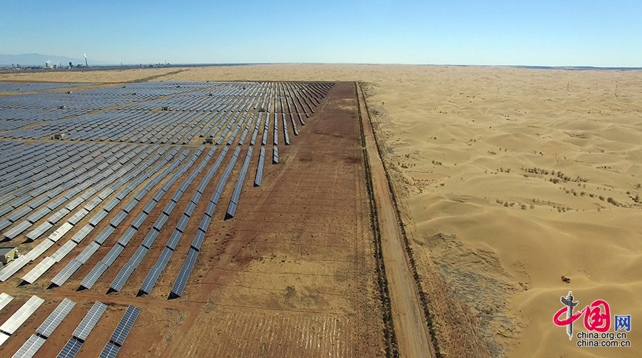 这些太阳能板像是一片片的树叶,日复一日的吸收着太阳的光芒,转化成方便传输的清洁能源。每年有14.7亿度电,从这里传到千家万户。 中国网杨佳 摄影报道