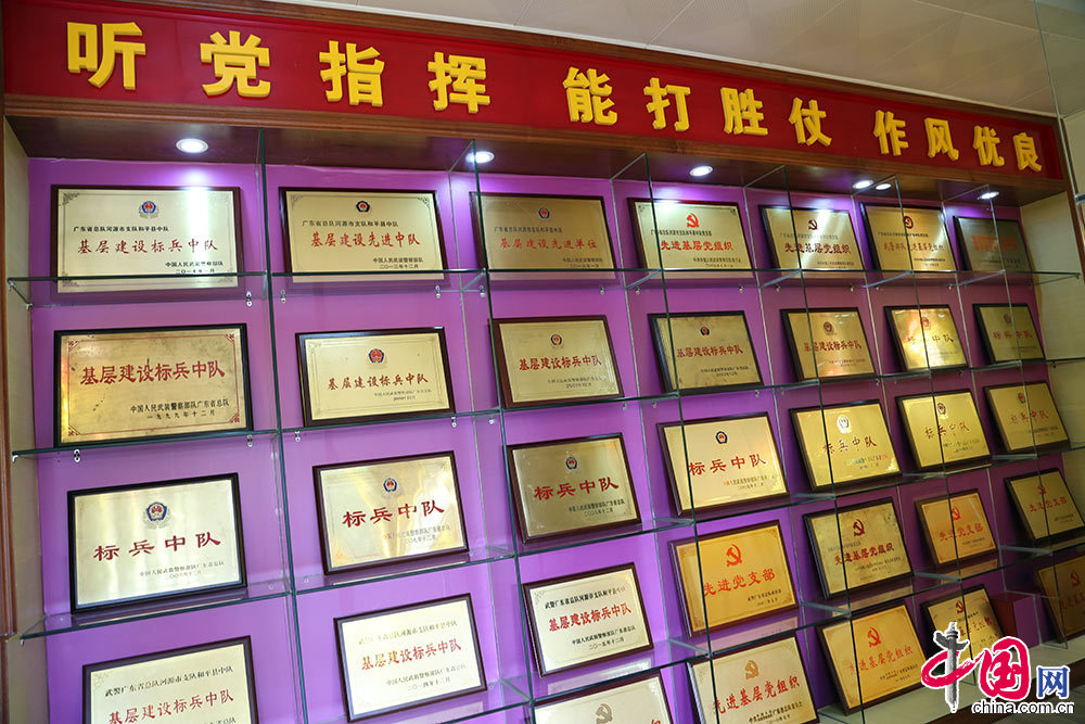 武警和平县中队荣誉室里摆放了各类牌匾和锦旗160多个。 摄影 裴希婷