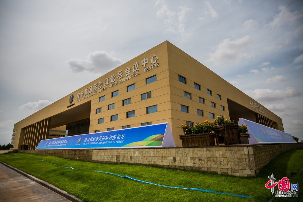 库布其国际沙漠论坛会议中心外景。第六届库布其国际沙漠论坛将于7月29日至30日在此召开,会场已准备就绪。中国网记者 郑亮摄影