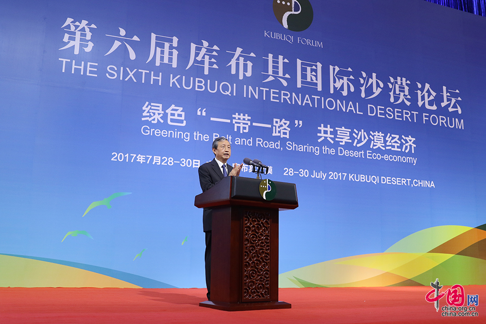 第六届库布其国际沙漠论坛是落实“一带一路”国际合作高峰论坛的一次重要会议。全国政协副主席、科技部部长万钢,内蒙古自治区党委书记李纪恒,国家林业局局长张建龙,中国外交学会会长吴海龙,斯洛文尼亚前总统图尔克,波兰前总统科莫罗夫斯基,希腊前总理萨马拉斯等嘉宾出席开幕式并致辞,库布其国际沙漠论坛秘书长王文彪主持会议。