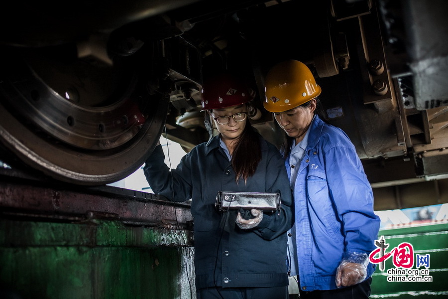 探伤工作大部分时间是在室内或者车间内进行,但根据检测内容的不同,爬车头、钻地沟进行探伤已经是这些女孩工作的常态。中国网记者 郑亮摄