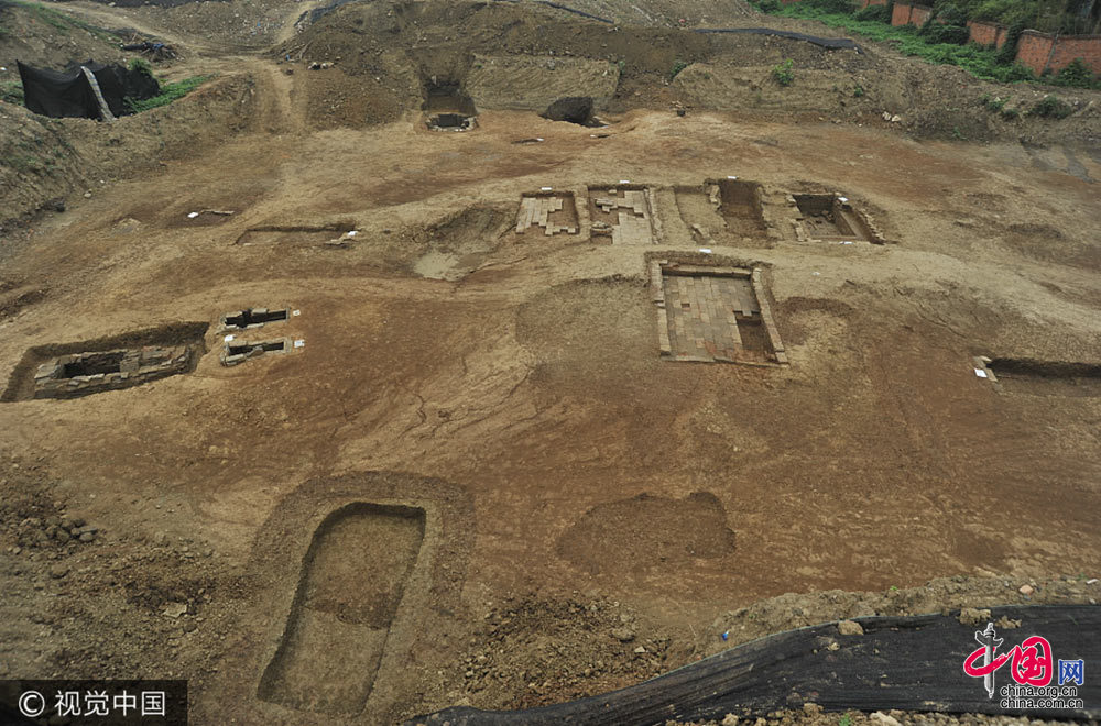 2017年8月29日,近日,成都市青羊大道旁的西城花园小区考古工地接近尾声,75座墓地陆续清理完毕。视觉中国