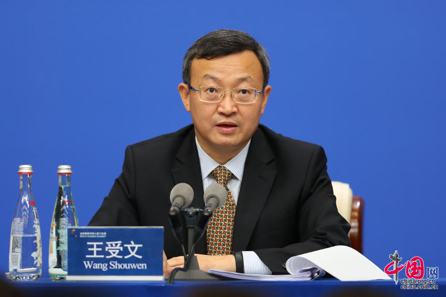 中国网9月3日讯 金砖国家峰会今日在厦门召开,中国代表团商务部副部长王受文在金砖国家领导人厦门会晤新闻中心大发布厅举行新闻发布会,介绍金砖国家经贸合作成果。王受文表示,金砖国家将在反对贸易保护主义上达成一致。