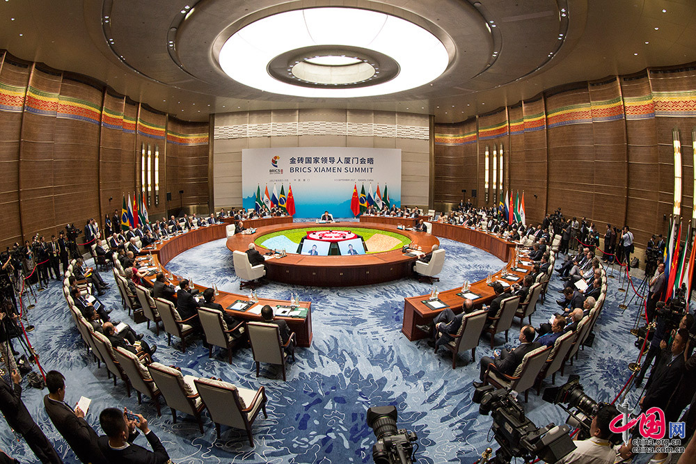 9月4日上午,金砖国家领导人第九次会晤大范围会议在厦门国际会议中心举行。摄影:段崴