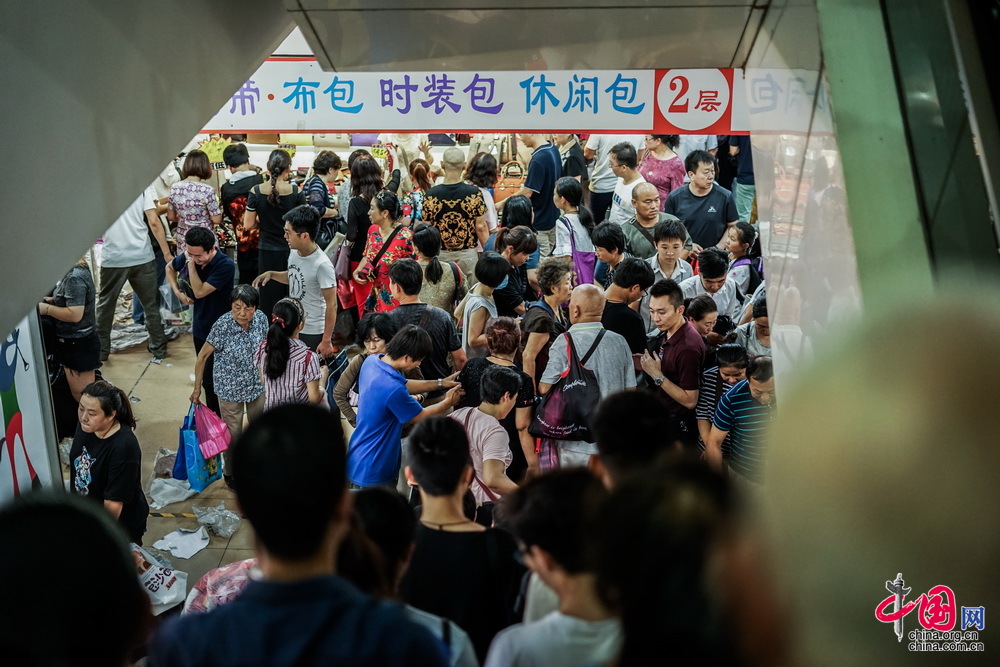 50元一个人造皮背包,20块钱一个时尚钱包,买两个还送一个,还在营业的摊主和顾客做着她在“天意”最后的生意。中国网记者 郑亮摄影