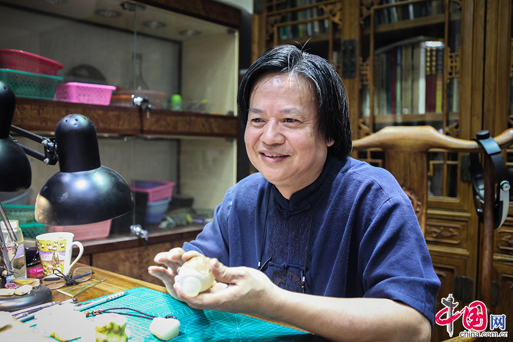 如今,在李克生的徒弟中,很多人都是慕名前来,主动拜师学艺,他们中有功底深厚的工匠,也有年仅十几岁,白纸一样的“00后”。徒弟许泽荣,被认为是目前深得李克生真传的一位。已经成家的他在潮州也有自己的加工作坊,慕名而来往返两地学艺。中国网记者 伦晓璇 摄